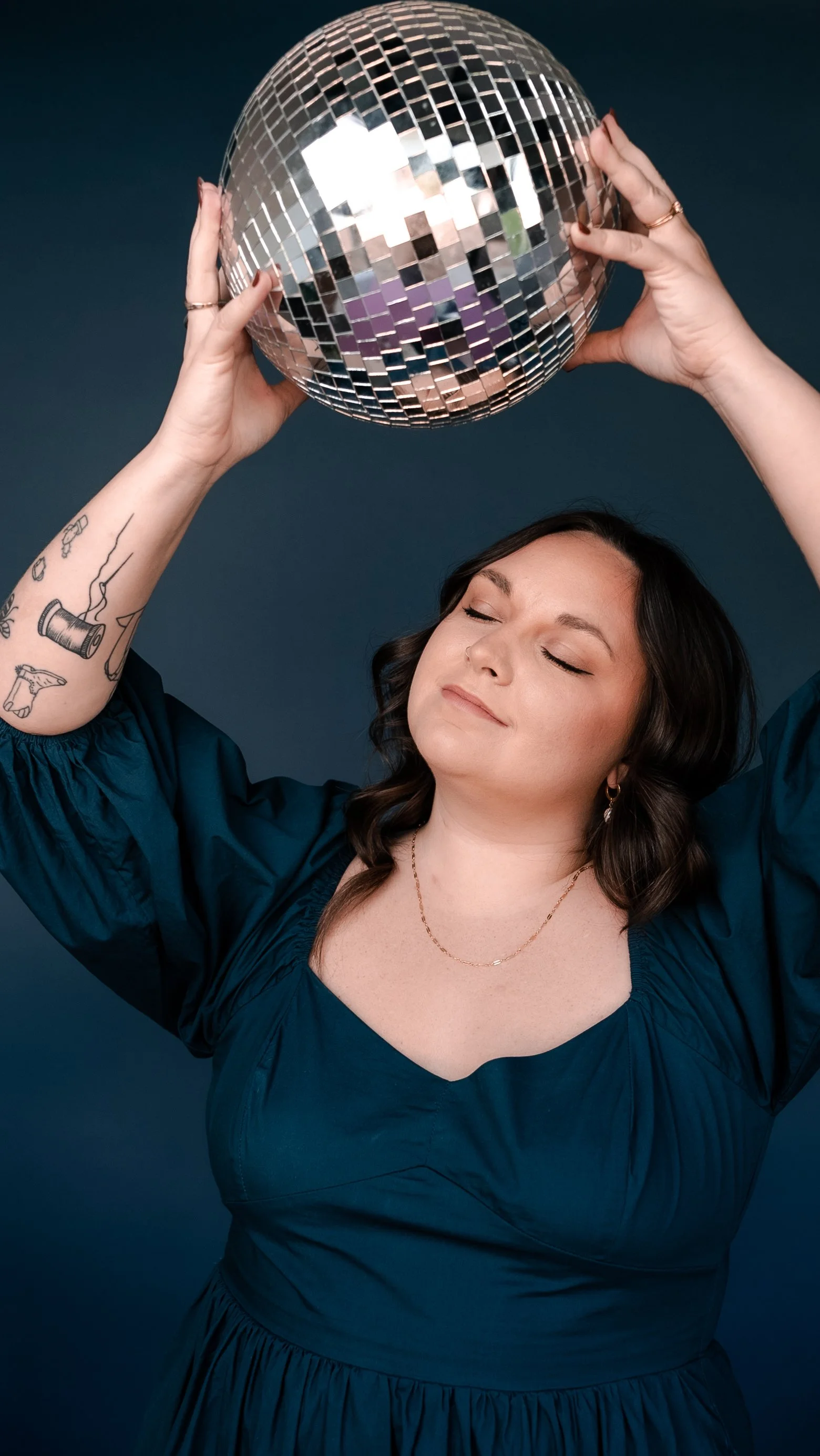 Solid colors keep the viewer's eye on you — your face, your expression, your energy. They're also the most versatile for different platforms and uses. A photo of you in a solid navy blouse works as a LinkedIn headshot, a website hero image, a social media post, and a business card. A busy patterned top works for... maybe one of those.